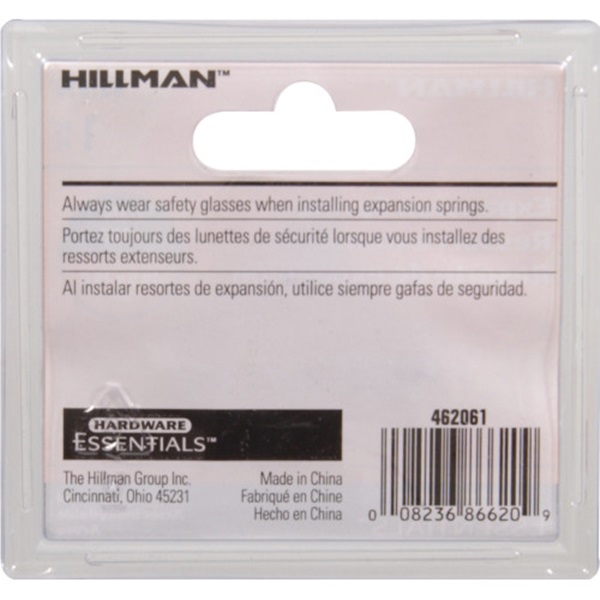 • Hillman 851636 CTC Extension Spring, 3/4 in Dia, 1-3/4 in L, Steel, Zinc