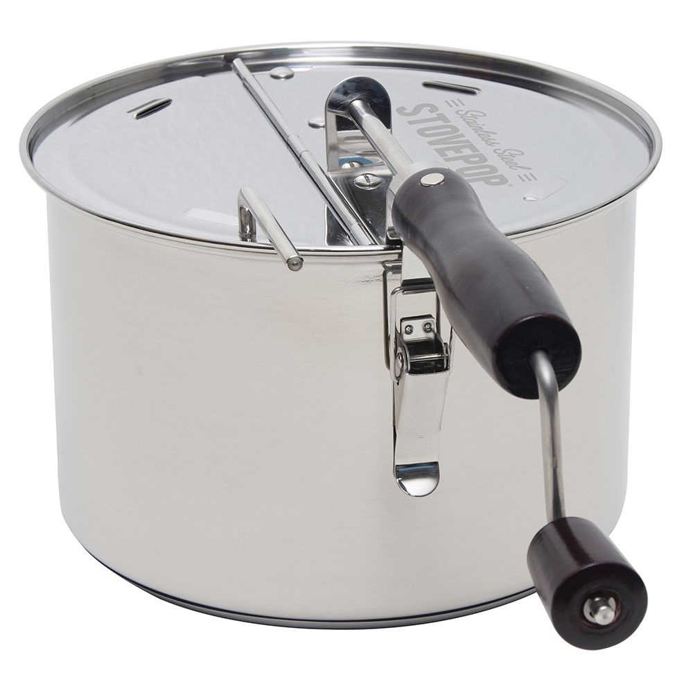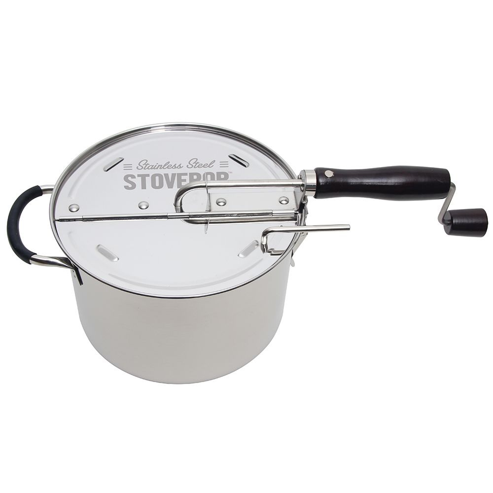 The stove pop popcorn popper is the perfect tool for theater style popcorn. The patent pending gearless flex-drive technology ensures every kernel of popcorn is popped. Made of durable stainless steel, this product will give you years of service.