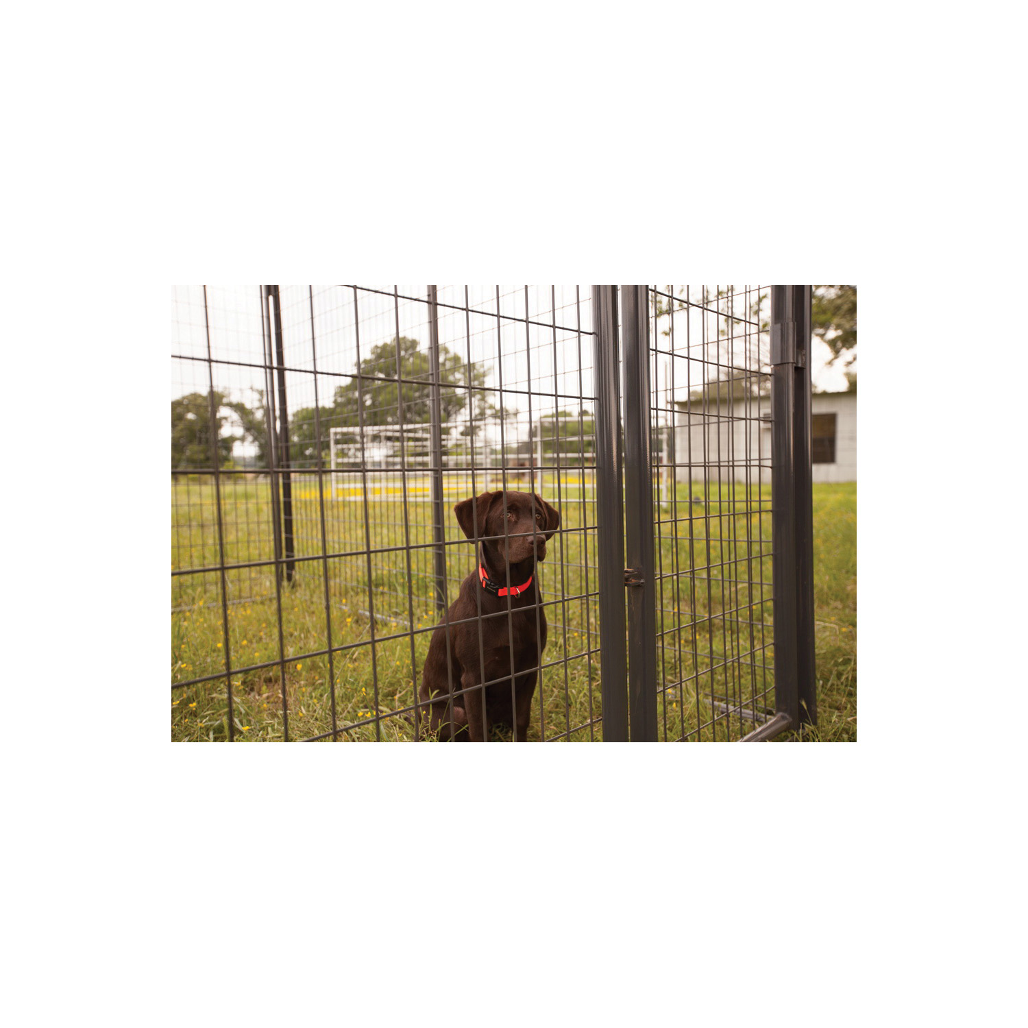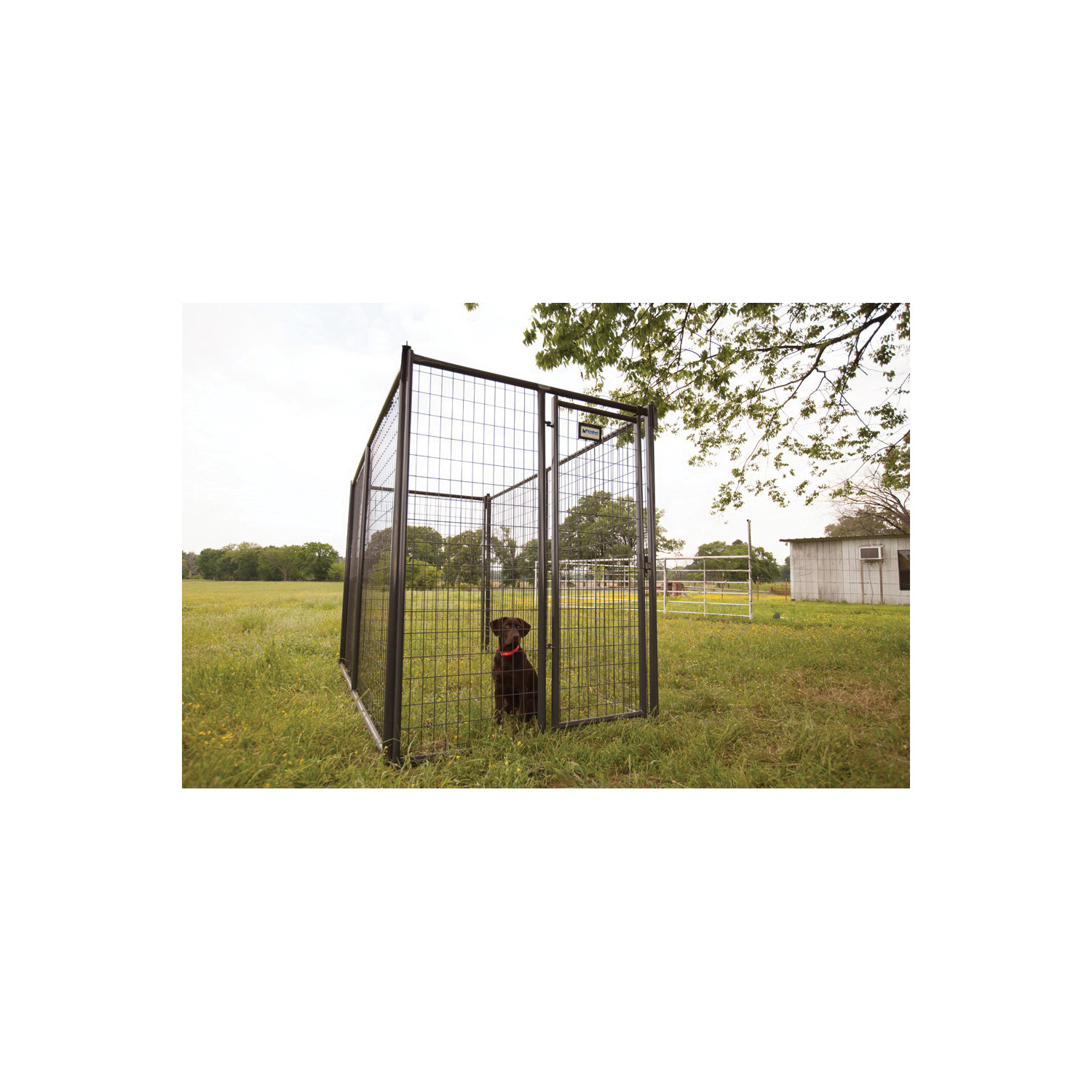 These durable, easy to assemble kennel kits combine galvanizing and powder coating to ensure maximum rust protection from animal urine and cleaning compounds. Priefert's Professional Grade Premier Kennels meet and exceed the durability requirements of professional boarding operations, breeders, trainers and animal hospitals. Designed and built to provide many years of trouble-free operation, our Premier Kennels are a great option for professionals and individual pet owners. These kennels include unique features that enhance ease of assembly, versatility, durability and animal safety. No tools are required for the quick and easy assembly of our kennels. Standard connectors offer unique versatility for single or multiple free-standing units. Special connectors may be ordered for attachment to walls or posts. This allows you to avoid the unnecessary expense and time delay of building custom kennels, as well as the hassle normally associated with expanding your kennel's capacity. Our Premier Kennels offer double protection from harsh conditions and the natural acidity commonly found in kennel environments. Protection begins with the use of galvanized steel tubing and heavy 8 ga 2 x 4 in galvanized welded wire. Each strand of wire is individually welded to the tubing frame with stainless steel welding wire.