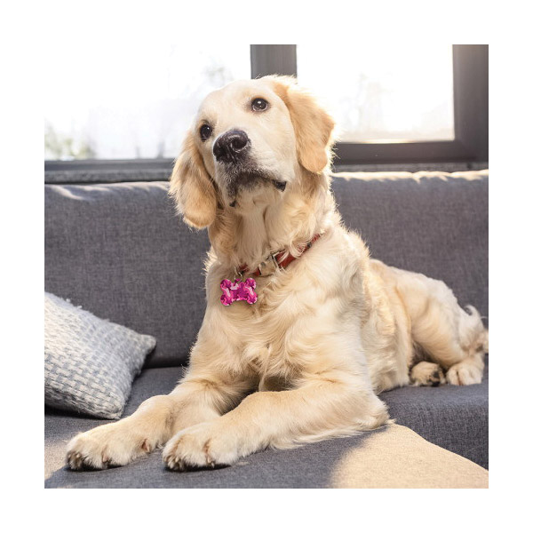 Your pet will never shine as much as when it's wearing a pink camo large bone Quick-Tag. Don't be afraid to make your friends and their pets jealous. Personalized tags are a great way to set your pet apart from the Animalia crowd, while showcasing an aspect of their personality. Engraved tags ensure that your pet never gets lost without the information needed for you to be contacted. Tag can be engraved with pet's name, home address and/or phone number (yours, not theirs). Alternatively, inscription can be instructions, a catchphrase or a custom message.