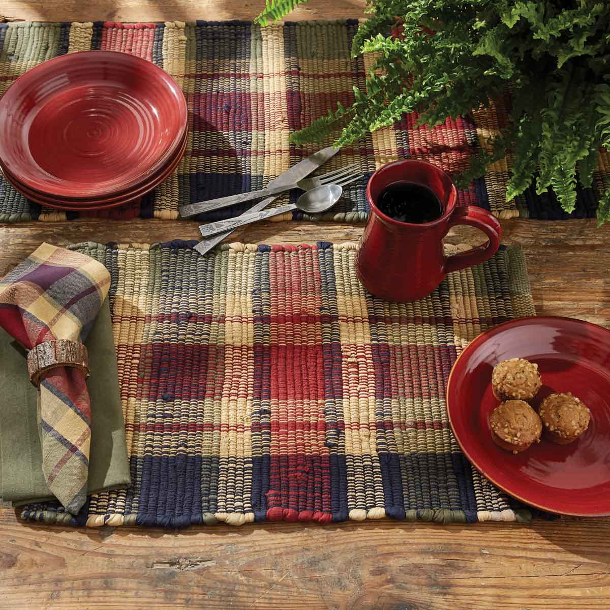Park Designs Summit Series 467-01 Plaid Chindi Placemat, 13 in L, 19 in W, Plaid Design