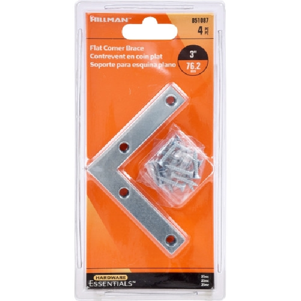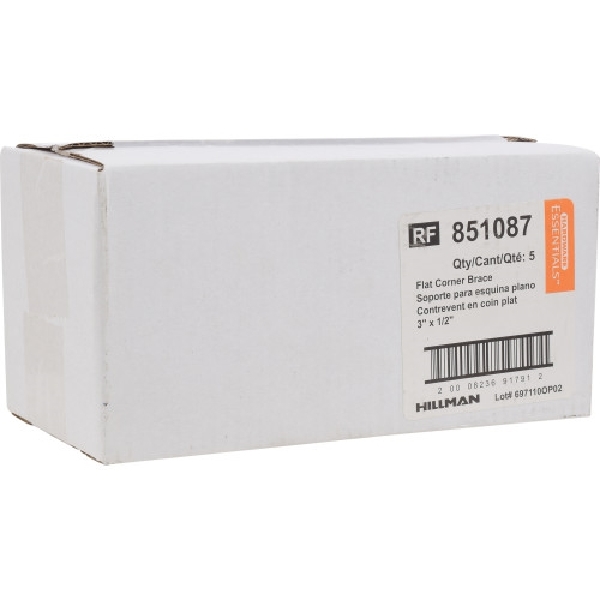 • Hardware Essentials 851087 Flat Corner Iron, 3 in L, 1/2 in W, Steel, Silver, Zinc-Plated