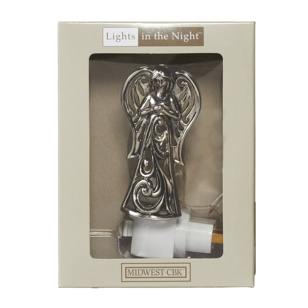 Midwest-CBK Angel Night Light, Wattage Rating: 7 W, Fixture Material: Zinc Alloy, Fixture Finish: Silver, Dimensions: 4-1/4 in H x 2 in W x 2 in D, Includes: Bulb