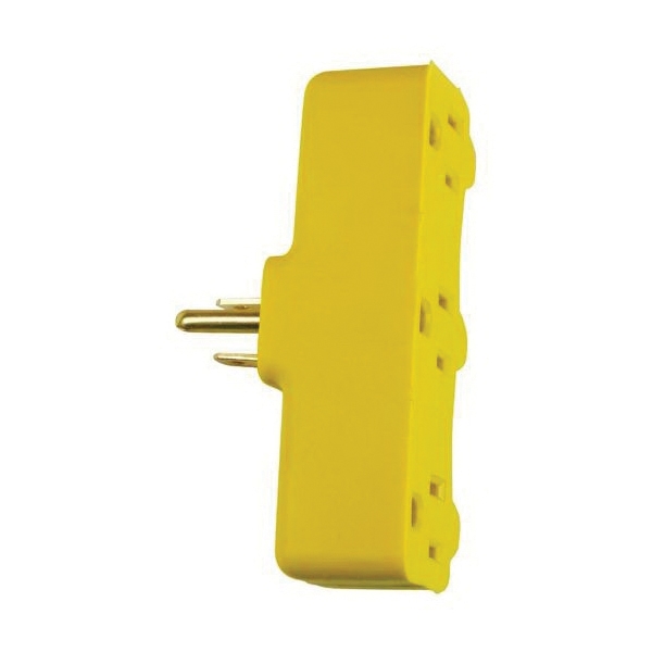 This 3-outlet adapter can plug directly into a wall-outlet or into a single-tap extension cord in order to provide power to 3 tools or appliances with a total load of 15 A.