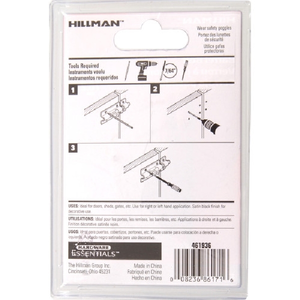 • Hillman 851003 Barrel Bolt, Zinc-Plated, 3 in L, Black, 1/PK