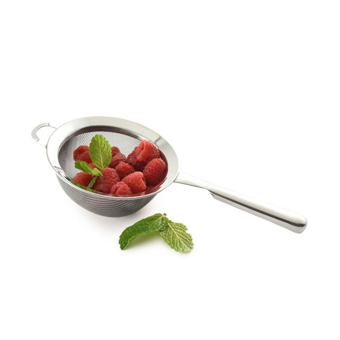 Solidly constructed from high quality stainless steel - from the two layers of tightly woven fine mesh to the thick handle and strong rivets, this strainer won't bend under the weight of food. You get a finer strain with a double mesh strainer! Sift, strain and rinse! Great for sifting dry ingredients like flour, sugar and spices. Also use for rinsing fruits and vegetables or fine grains and pastas. Strain sauces and gravy or remove seeds from squeezed fruit juices.