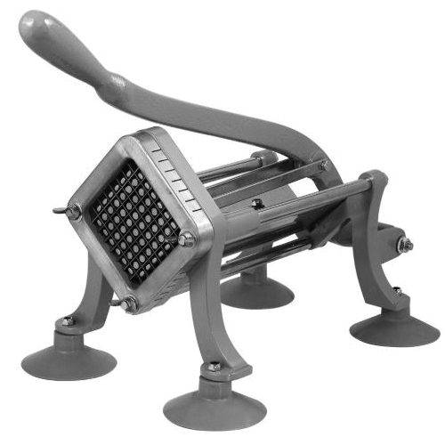 • This reliable, heavy-duty cast iron French fry cutter turns out uniform fries, zucchini sticks and other favorites with one push of the handle