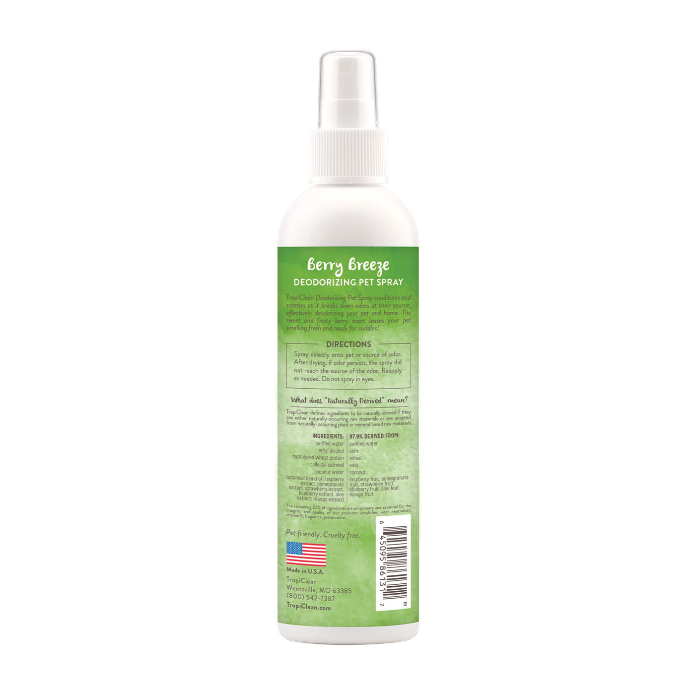 TropiClean 861312 Berry Breeze Deodorizing Pet Spray, Cat, Dog, Ferret, Hamster, Rabbit, 8 fl-oz