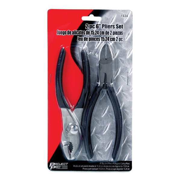 Project Pro Plier Set, Specifications: Cushion-Grip Handle, Steel, Number of Pieces: 2, Includes: (1) 6 in Slip-Joint Plier, (1) 6 in Diagonal Cutting Plier