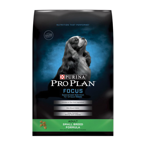 Pro Plan FOCUS Dog Food, Breed Size: S, Dry, Flavor: Chicken, Net Content: 6 lb, Ingredients: Chicken, Brewers Rice, Corn Gluten Meal, Poultry By-Product Meal (Natural Source of Glucosamine), Whole Grain Corn, Animal Fat Preserved with Mixed-Tocopherols (Form of Vitamin E), Corn Germ Meal, Fish Meal (Natural Source of Glucosamine), Animal Digest, Wheat Bran, Potassium Chloride, Salt, Dried Egg Product, Calcium Phosphate, Vitamin E Supplement, L-Lysine Monohydrochloride, Choline Chloride, Zinc Sulfate, Ferrous Sulfate, L-ascorbyl-2-polyphosphate (Source of Vitamin C), Manganese Sulfate, Niacin, Calcium Carbonate, Vitamin A Supplement, Calcium Pantothenate, Copper Sulfate, Thiamine Mononitrate, Riboflavin Supplement, Vitamin B-12 Supplement, Pyridoxine Hydrochloride, Garlic Oil, Folic Acid, Vitamin D-3 Supplement, Calcium Iodate, Biotin, Menadione Sodium Bisulfite Complex (Source of Vitamin K Activity), Sodium Selenite, Nutritional Information: 29% Crude Protein, 17% Crude Fat, 3% Crude Fiber, 12% Moisture, 1.5% Linoleic Acid, 1% Calcium, 0.30 mg/kg Selenium, 0.8% Phosphorus, 15000 IU/kg Vitamin A, 460 IU/kg Vitamin E, 70 mg/kg Ascorbic Acid, 400 ppm Glucosamine