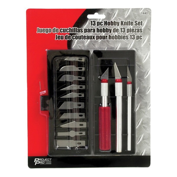 • Performance Tool 1440 Hobby Knife Set, 13-Piece, Aluminum/Plastic, Natura/Red