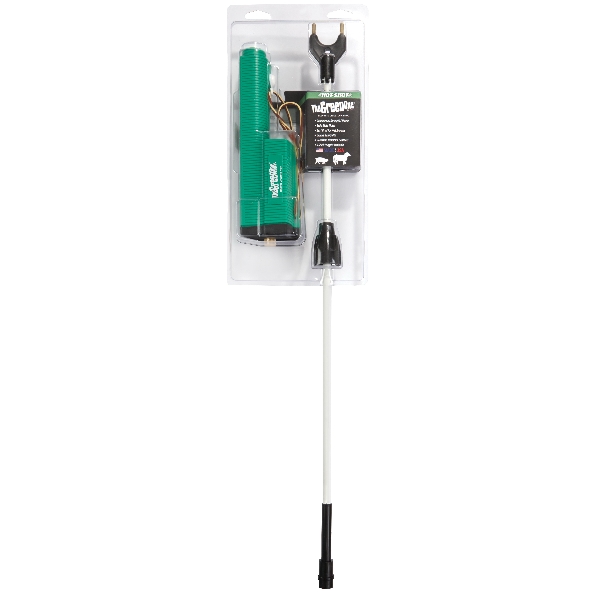 HS2000 The Green One is a battery-operated livestock prod delivering unparalled performance in all conditions, especially on wet animals. Hot-Shot continues to lead the industry with our dependable, commercial-strength prods. Every unit is factory tested to high performance standards, making it the ongoing brand of choice for farmers, ranchers and professional stock handlers and haulers. When used correctly, electric prods are a time-tested, humane way to aid in the movement of livestock be sure to read and understand all documentation included before using this product. Permanently sealed, maintenance-free solid-state motor resists damage by dirt or moisture. Unique safety clip prevents accidental use. Latigo carrying strap and six C-cell batteries included. Comes with an interchangeable 36 in rigid fiberglass shaft.