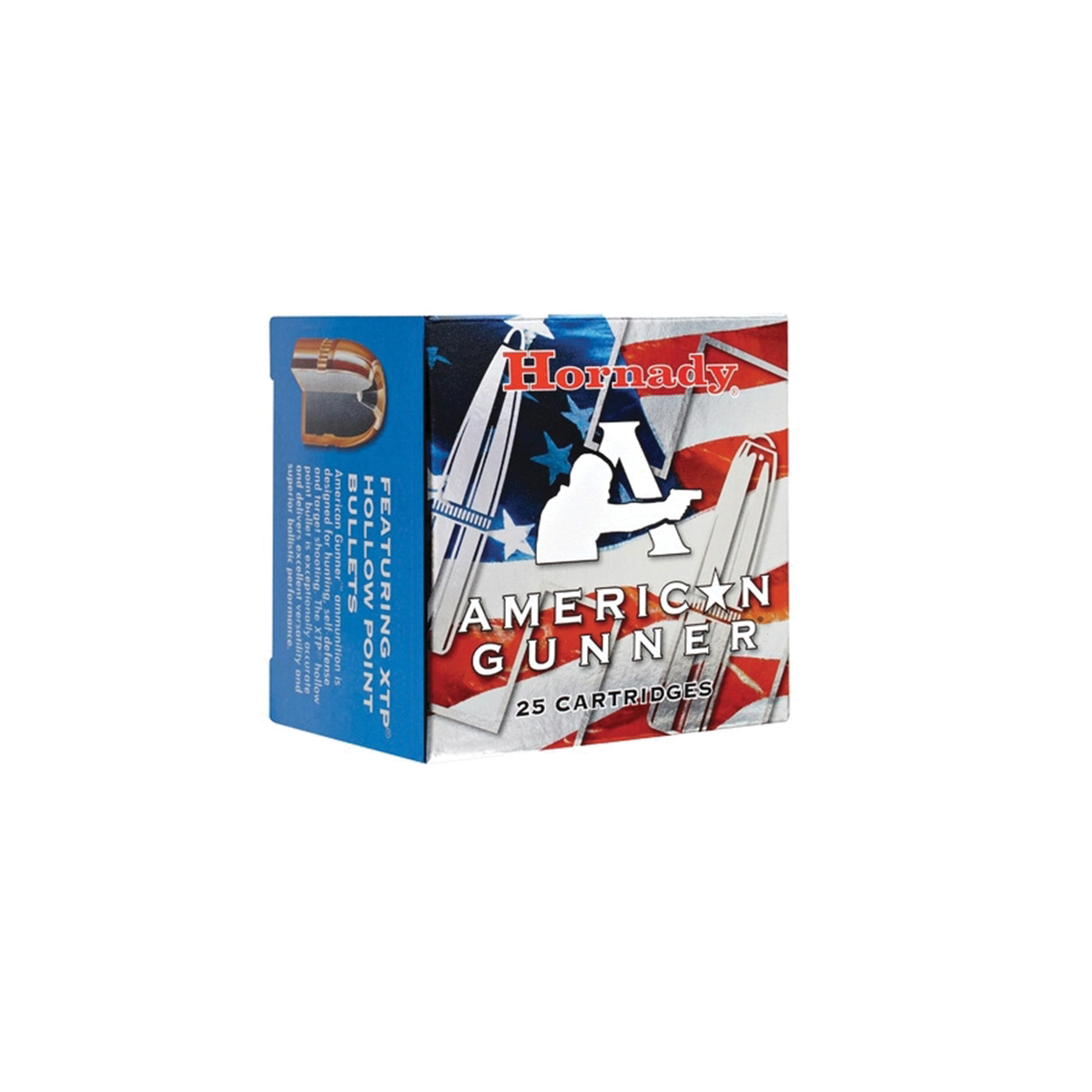The American Gunner® line of ammunition is a collection of tried and true, versatile loads that are popular with shooters for their target shooting, hunting or self-defense needs. Made in the USA with premium components, American Gunner® ammunition combines generations of ballistics know how with modern technology.